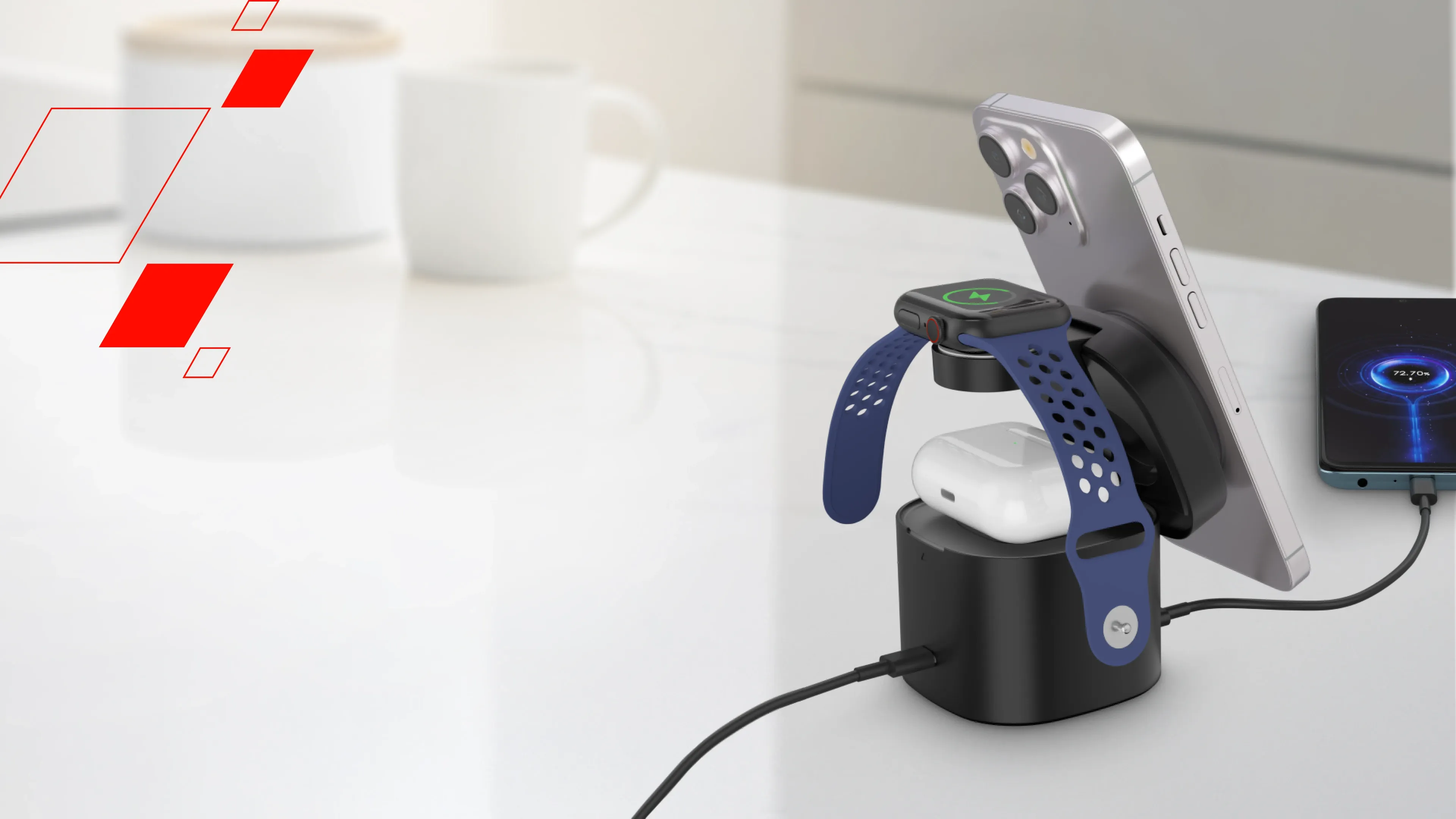 OnCharge 405 — это компактная универсальная беспроводная зарядная станция, созданная для тех, кто хочет заряжать сразу несколько устройств без беспорядка и лишних проводов. Сертифицированная по Qi2 технология магнитной зарядки мощностью 15 Вт обеспечивает быструю и стабильную подзарядку iPhone, а также поддерживает AirPods и Apple Watch. Дополнительный порт USB-C мощностью 30 Вт обеспечивает быструю проводную зарядку при необходимости. Устройство полностью соответствует современным стандартам — поддерживает PD3.0 и последние версии iOS, обеспечивая широкую и долговечную совместимость. Магнитное удержание (7,6–12N) надёжно фиксирует даже крупные смартфоны, такие как iPhone 16 или Galaxy S25, включая модели с MagSafe и совместимыми чехлами. Четыре уровня защиты — от перенапряжения, перегрева, перегрузки по току и короткого замыкания — обеспечивают безопасность устройств при максимальной скорости зарядки. OnCharge 405 создан для порядка и эффективности: умная, стабильная и безопасная зарядка всех ваших устройств в одном компактном корпусе.
